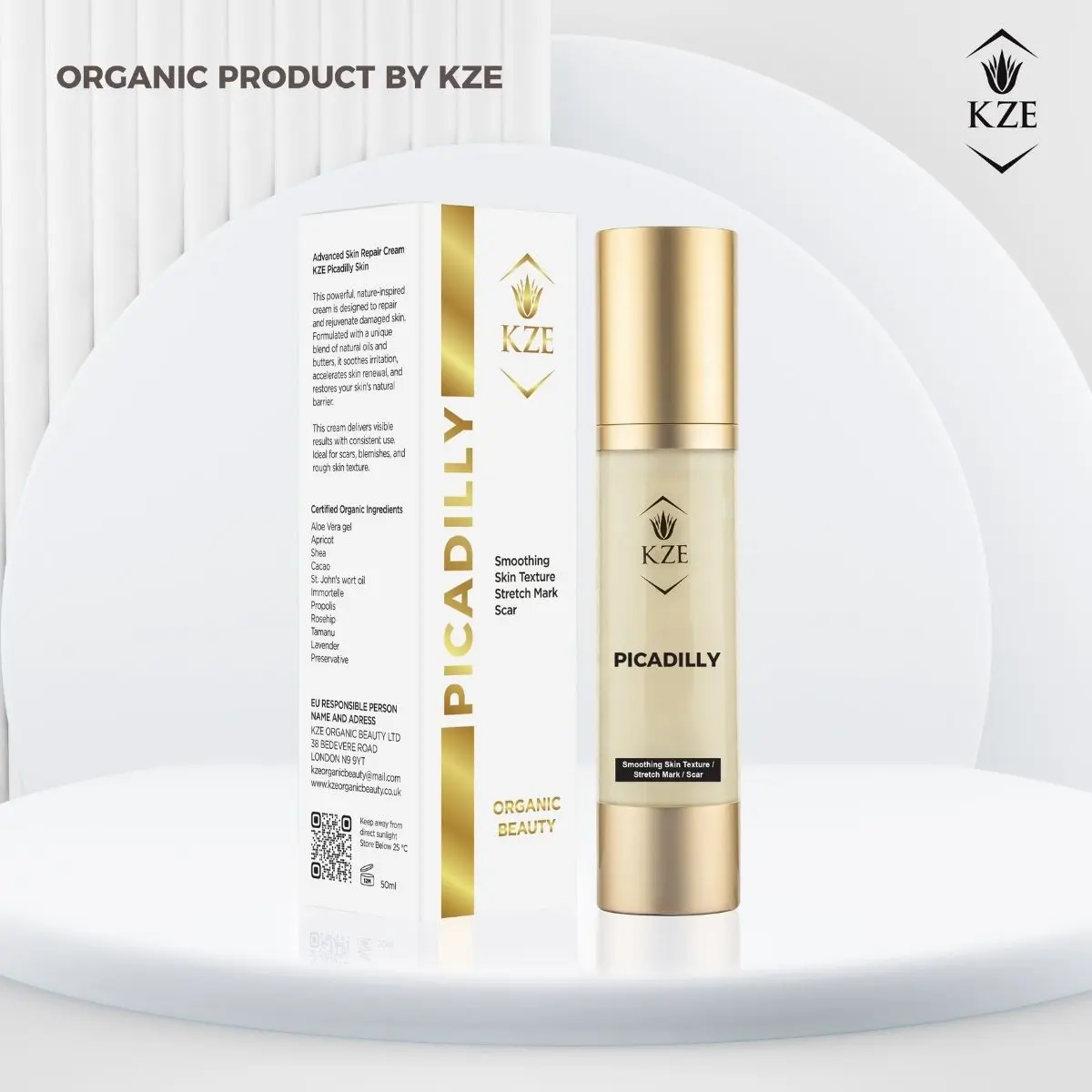 Made in the UK by KZE Organic Beauty LTD, your trusted source for premium organic skincare solutions.